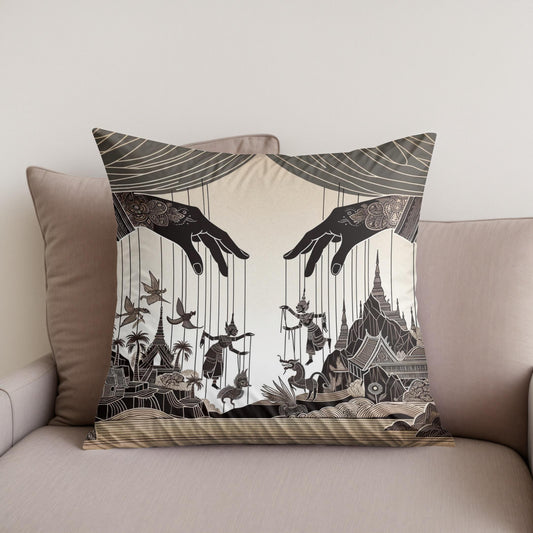 Enchanted Puppeteer's Silhouette Cotton Cushion