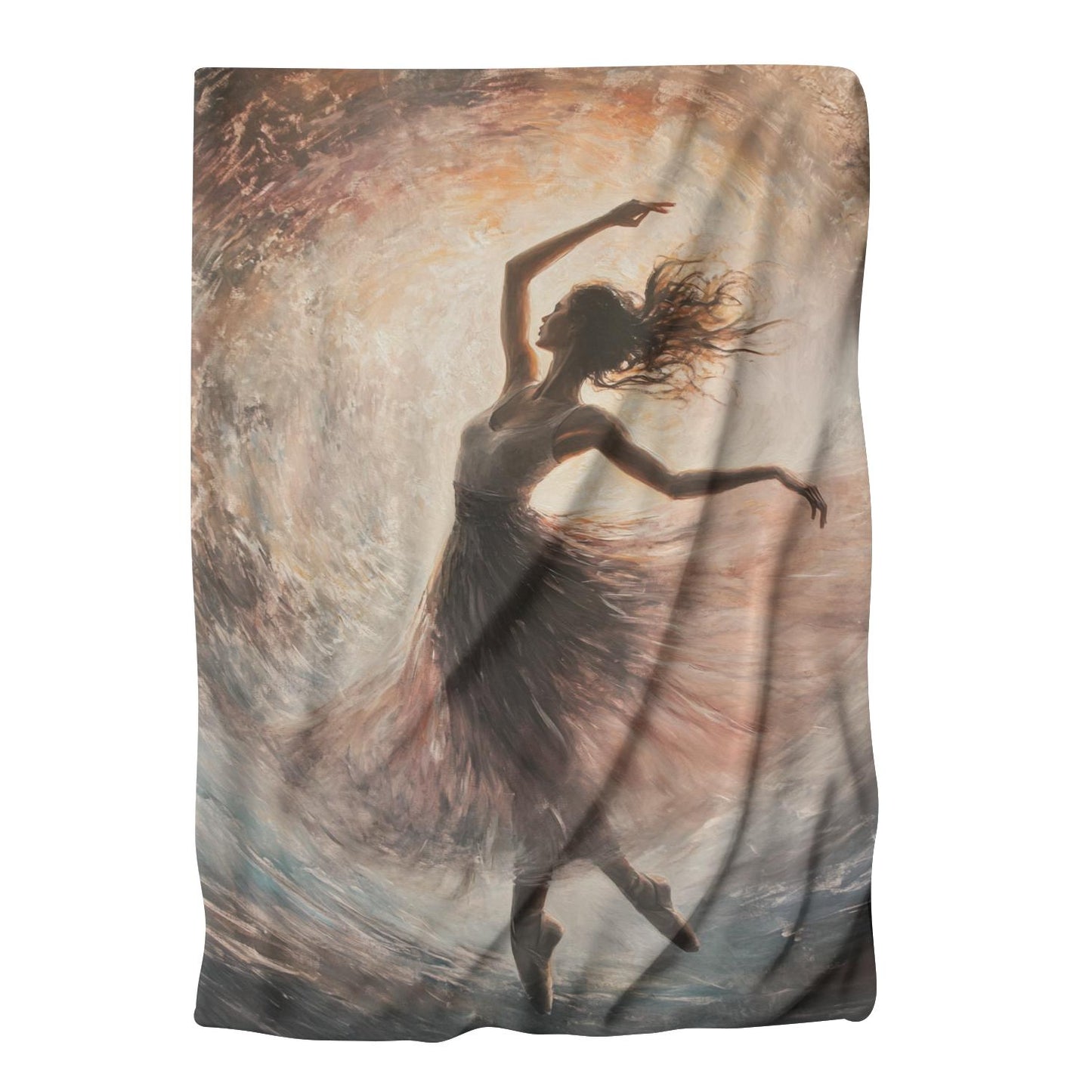 Adorn your space with this exquisite blanket, featuring a dynamic and spirited dancer in mid-movement. Captured in a swirl of rich, warm colours, her graceful form and flowing dress are set against a vivid backdrop that seems to pulsate with energy. This artwork infuses any room with a sense of passion and the freedom of dance. Perfect for those who appreciate the beauty of movement and expression.