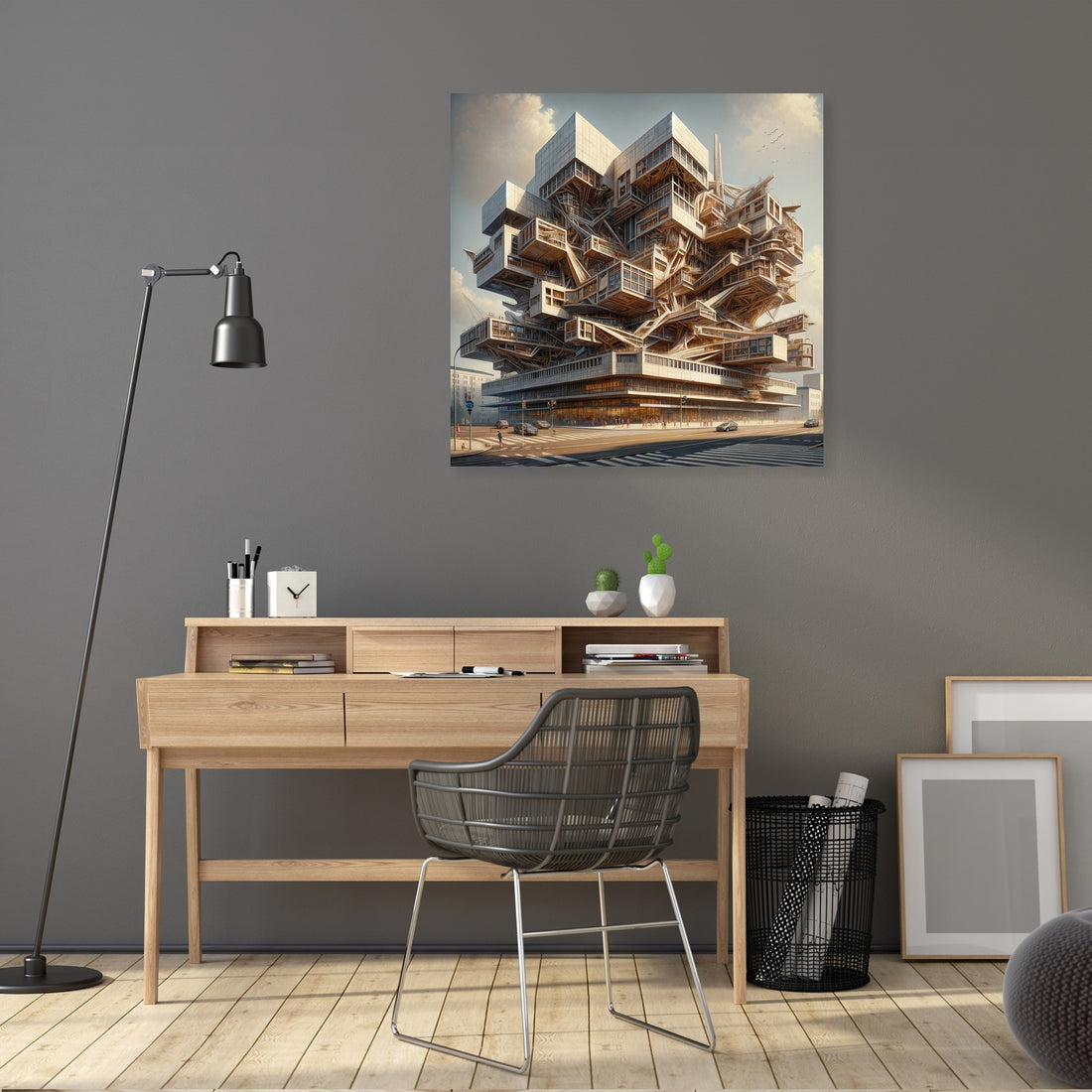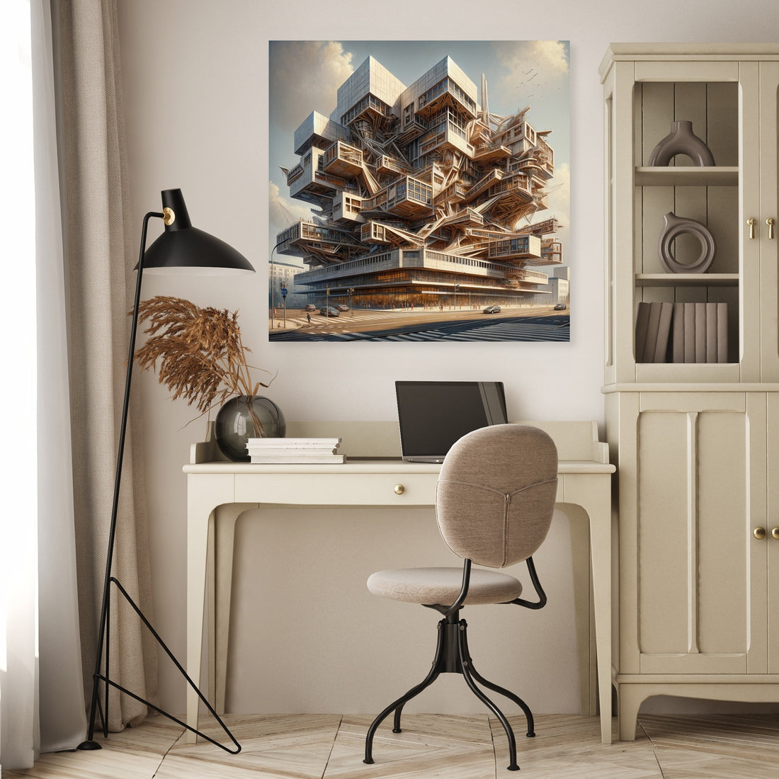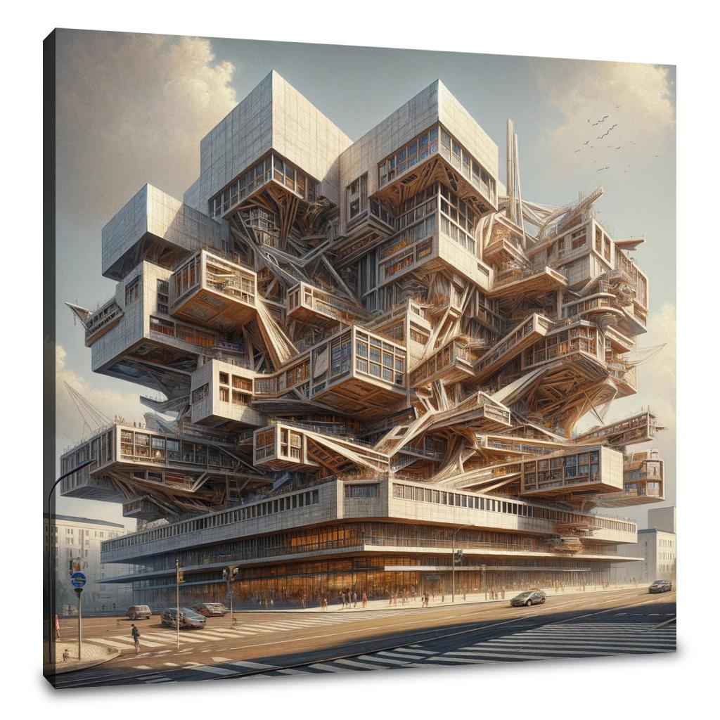 "Deconstructivist Muse Canvas" brings to life a cultural center inspired by the bold and innovative principles of Deconstructivism. Rendered in a Realistic painting style, this artwork captures the center's fragmented structures and non-linear design elements, challenging traditional architectural norms while remaining inviting and functional. It stands as a testament to creativity and architectural innovation, perfect for those who appreciate the dynamic and unconventional beauty of modern design.