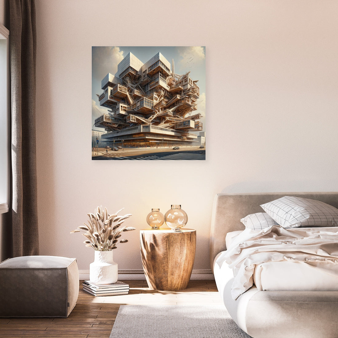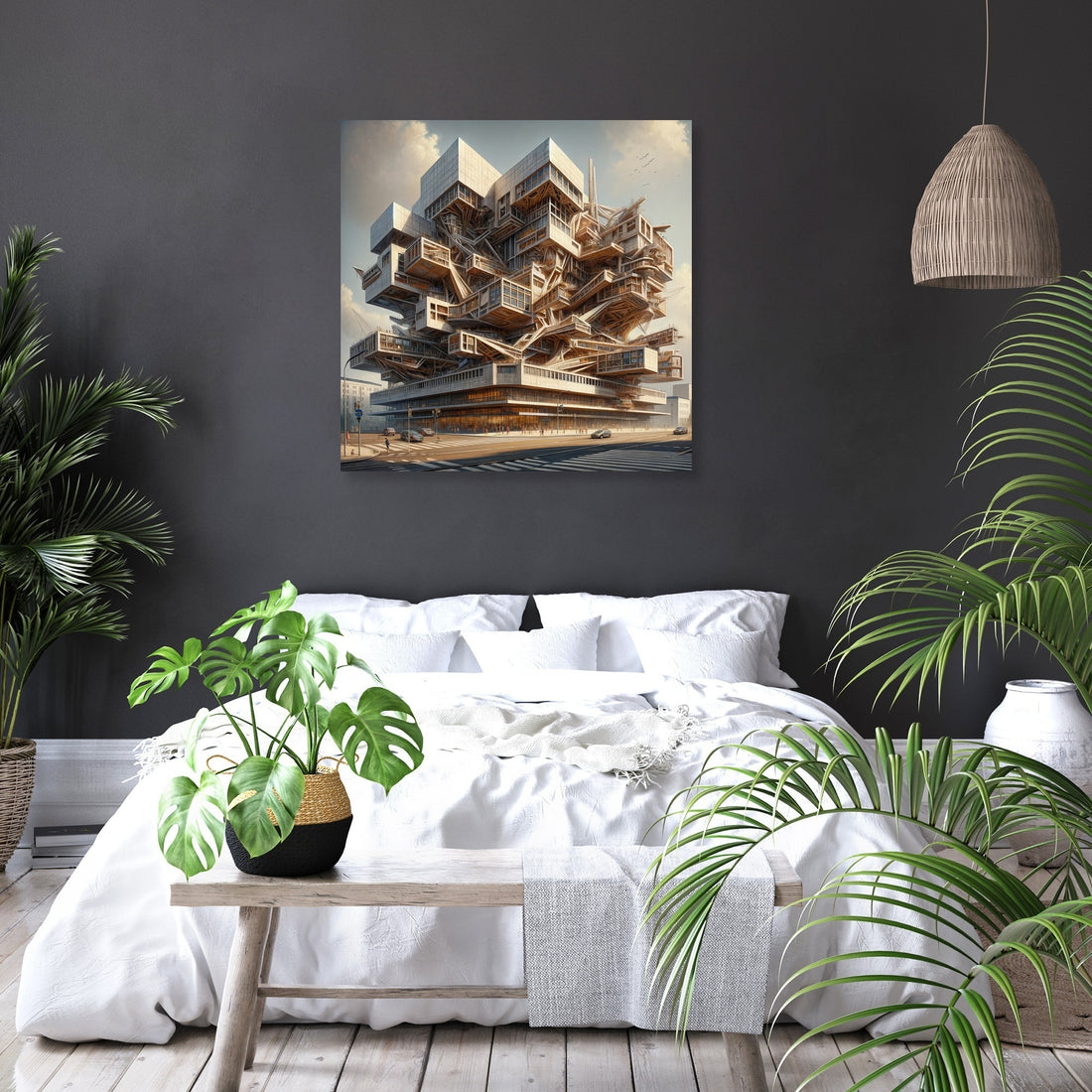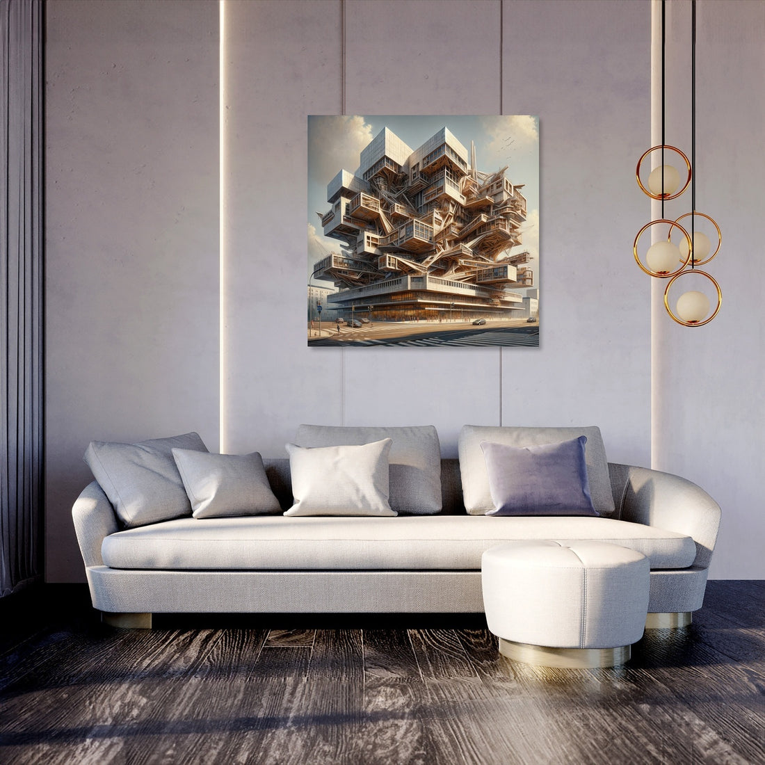 "Deconstructivist Muse Canvas" brings to life a cultural center inspired by the bold and innovative principles of Deconstructivism. Rendered in a Realistic painting style, this artwork captures the center's fragmented structures and non-linear design elements, challenging traditional architectural norms while remaining inviting and functional. It stands as a testament to creativity and architectural innovation, perfect for those who appreciate the dynamic and unconventional beauty of modern design.