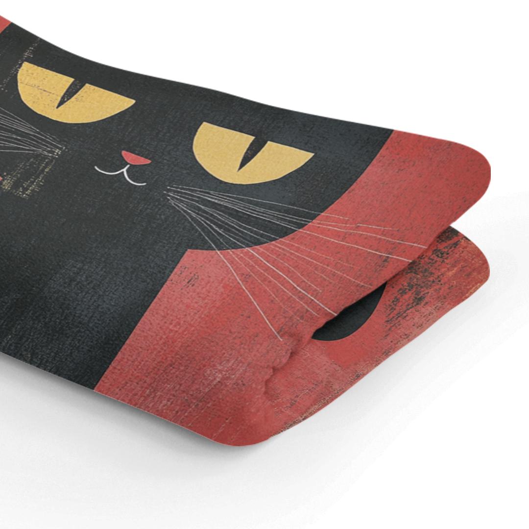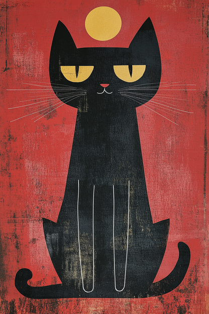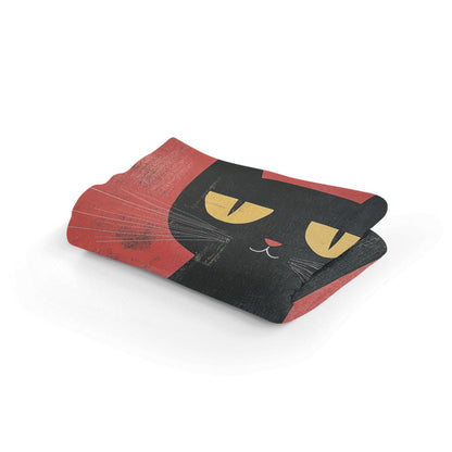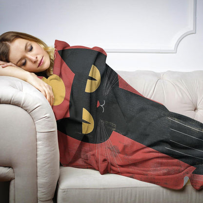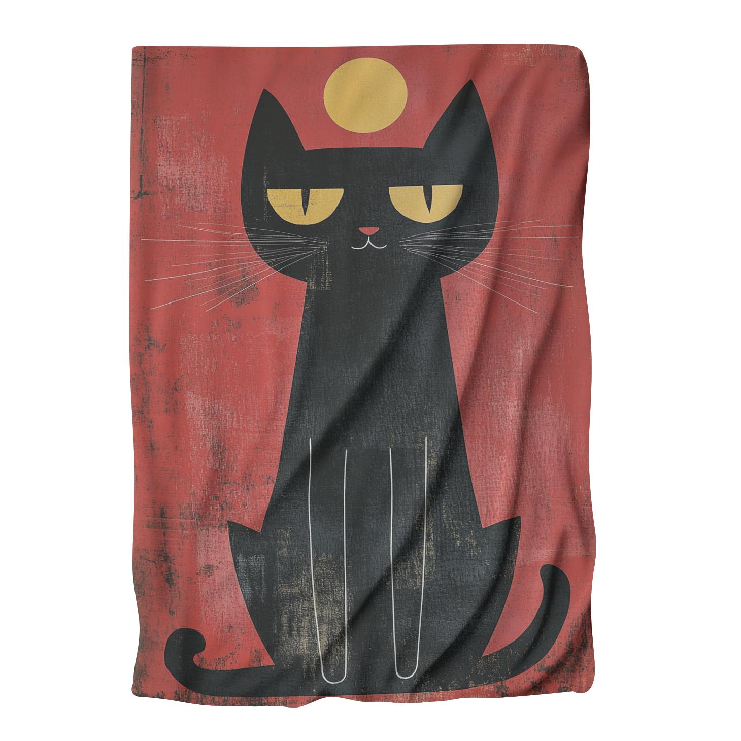Wrap up in a world of whimsy with this charming blanket featuring a stylised black cat against a rich, textured red background. A captivating golden orb rests atop the cat's head, enhancing the mystique. Ideal for adding a touch of artistic flair and warmth to any room.