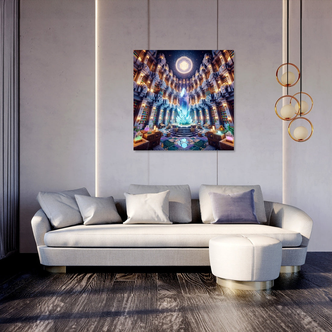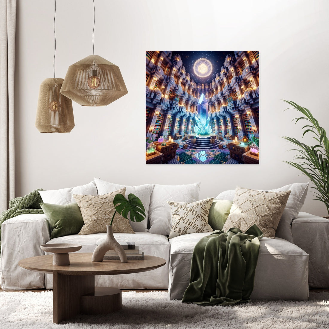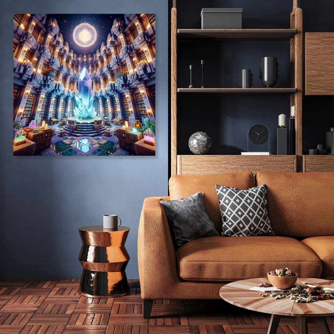 Step into a world of wonder with the Enchanted Shelves Canvas, a mesmerising piece of wall art that captures the magic of a mythical library. This artwork is a tribute to the mystique of reading, featuring towering shelves laden with spellbinding books. The play of soft blues, purples, and greens, illuminated by a mystical light, creates a captivating atmosphere in any room. Ideal for bibliophiles and dreamers alike, this canvas is sure to enchant and inspire.