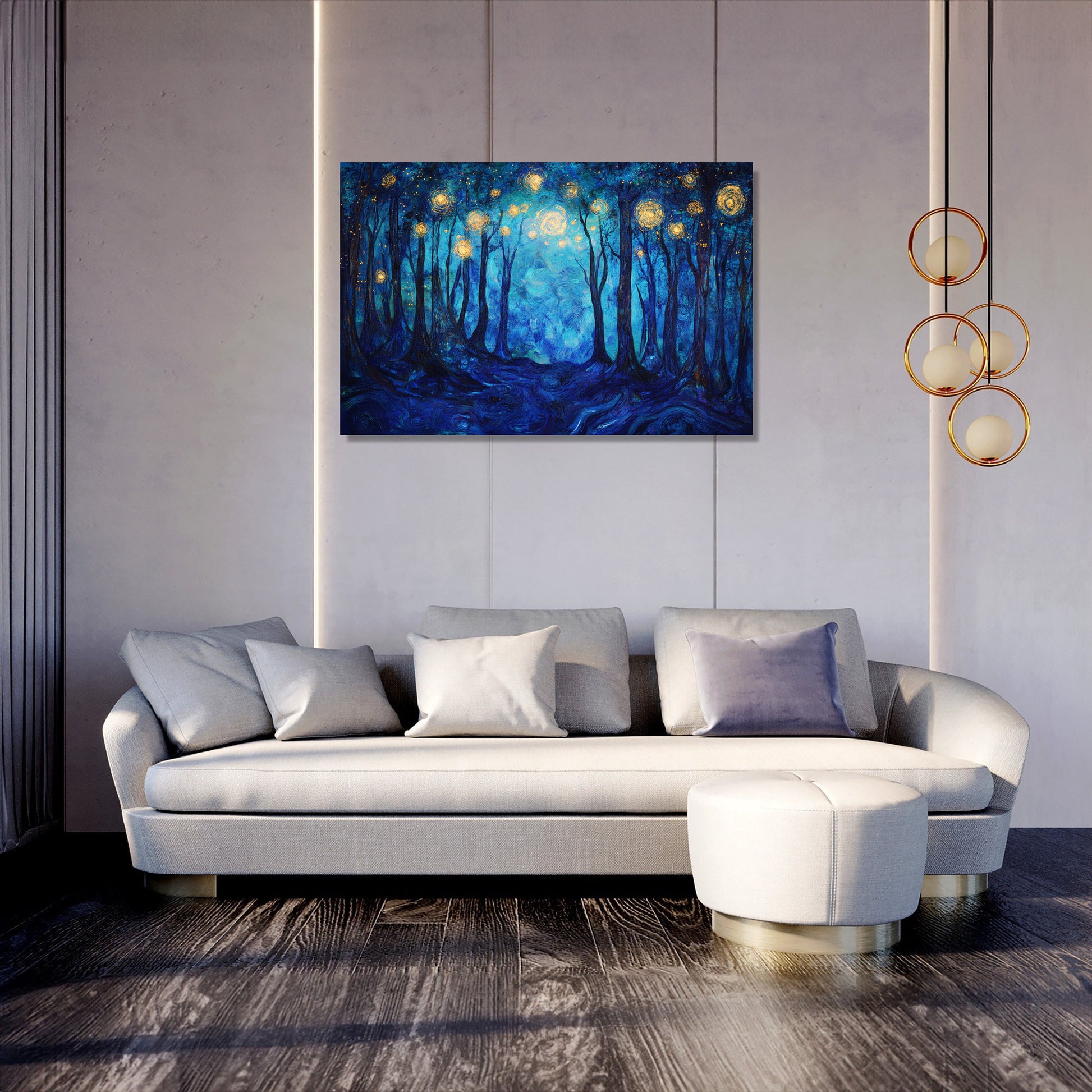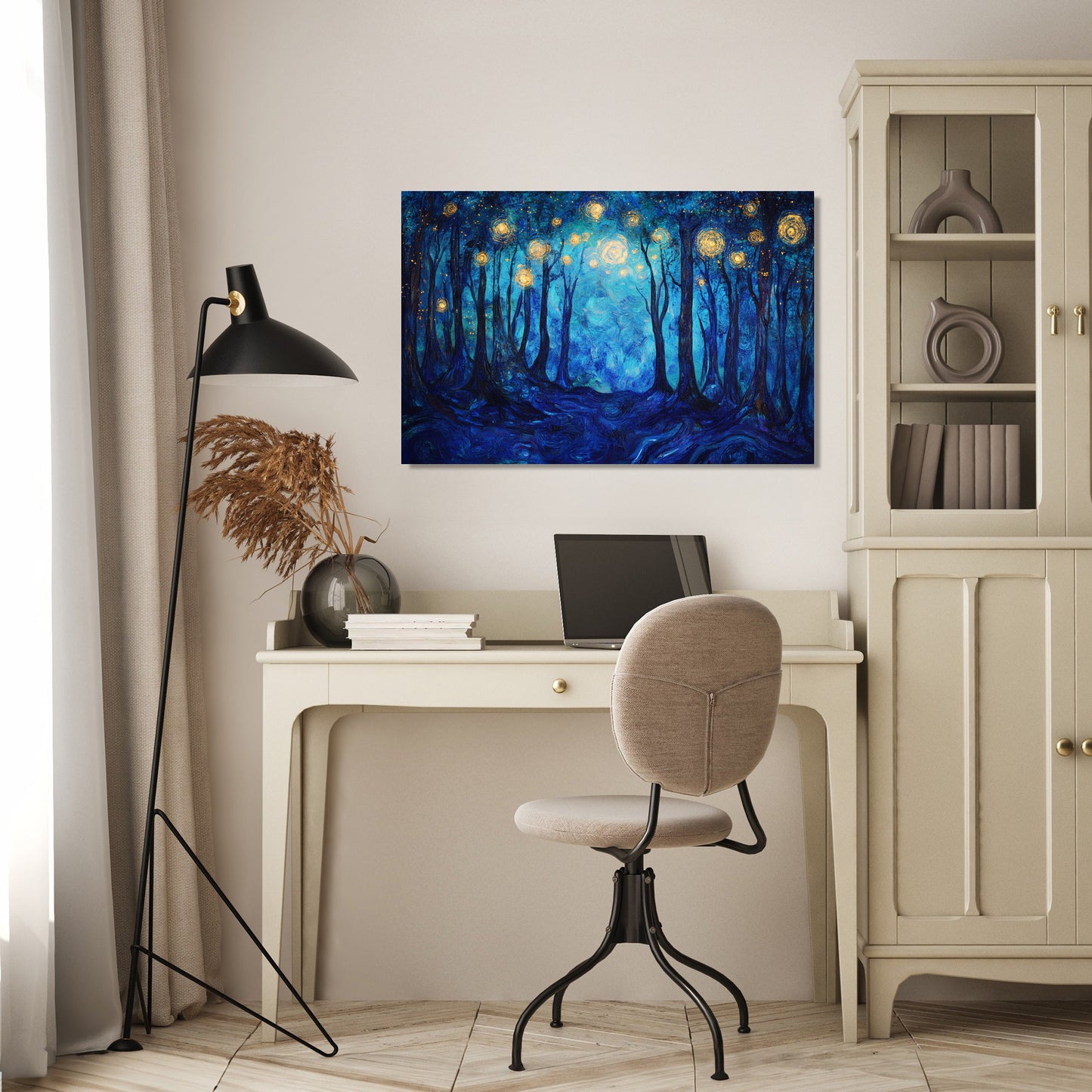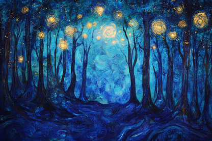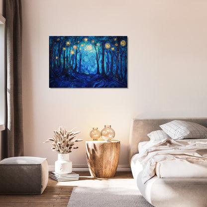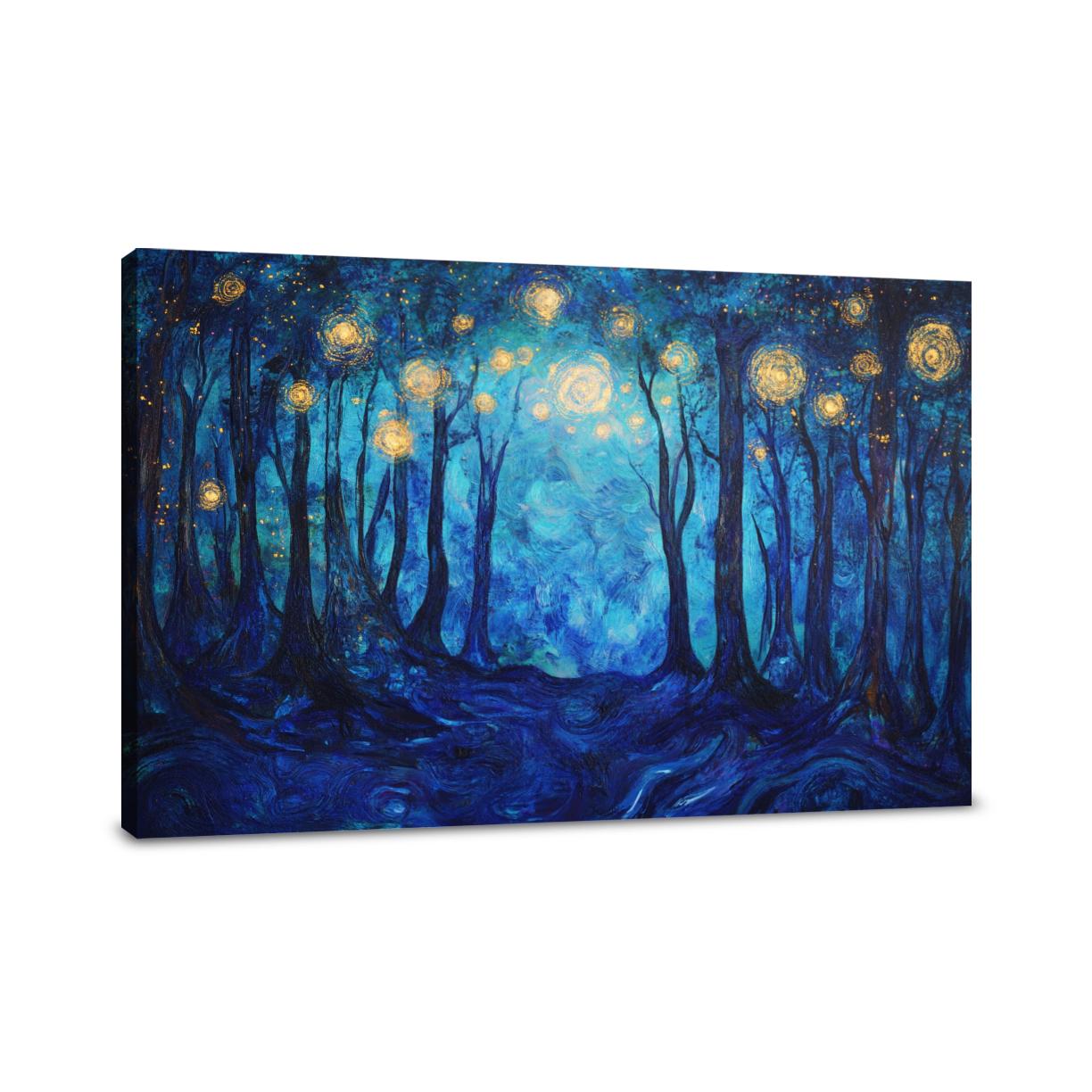 This enchanting canvas captures a surreal blend of imagination and nature's wonder, making it a stunning piece for any space. The magical, dreamlike forest filled with luminous fireflies offers a sense of mystery and serenity, perfect for sparking conversations and inspiring creativity in your home or office.