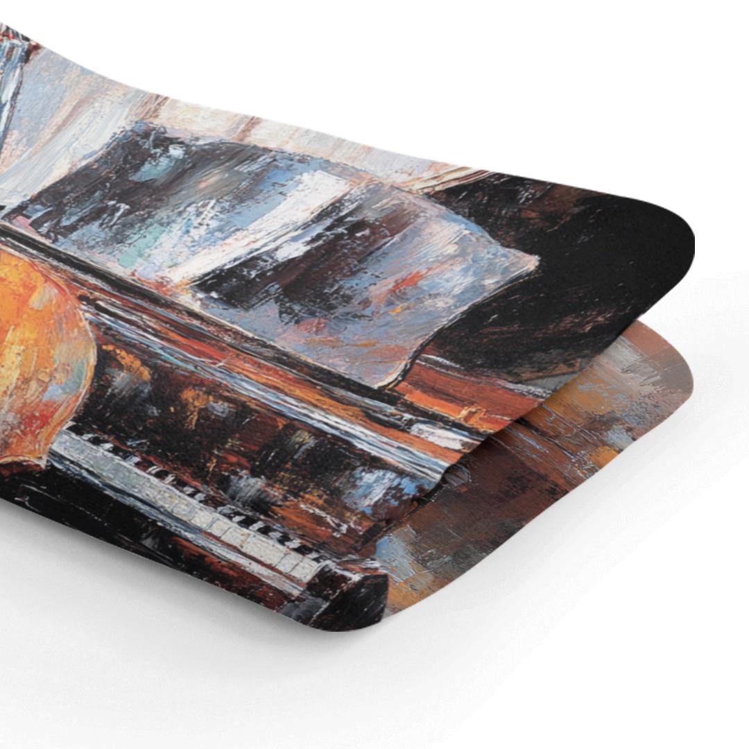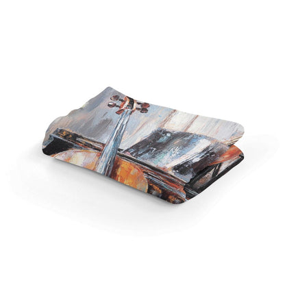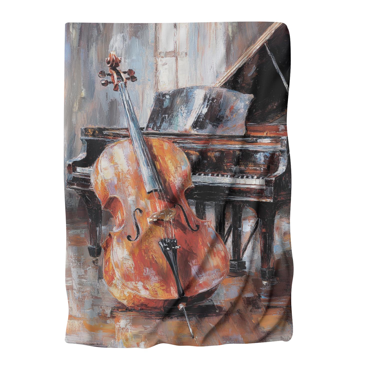 Indulge in the harmony of art and music with this exquisite blanket, featuring an artistic depiction of a cello resting against a grand piano. The vibrant tones and textured brushstrokes evoke a sense of passion and elegance, perfect for adding a touch of sophistication and warmth to any room. Ideal for music enthusiasts and art lovers alike, this blanket transforms your space with its captivating charm and cozy comfort.