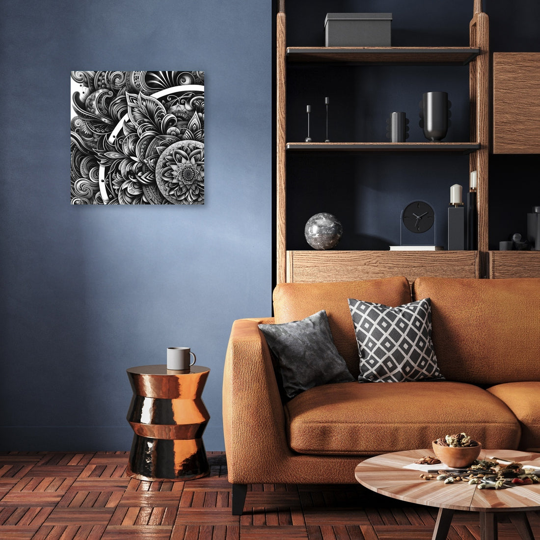 Inked Grace: Silver Line Elegance is a captivating canvas print that celebrates the exquisite artistry of body art. This black and white illustration intricately captures the delicate lines and subtle textures of tattoo designs. Enhanced with hints of silver, it adds a shimmering elegance to the overall composition. Perfect for those who admire the beauty and intricacy of body art, this piece brings a sophisticated and unique aesthetic to any room, making it a striking addition to any art collection.