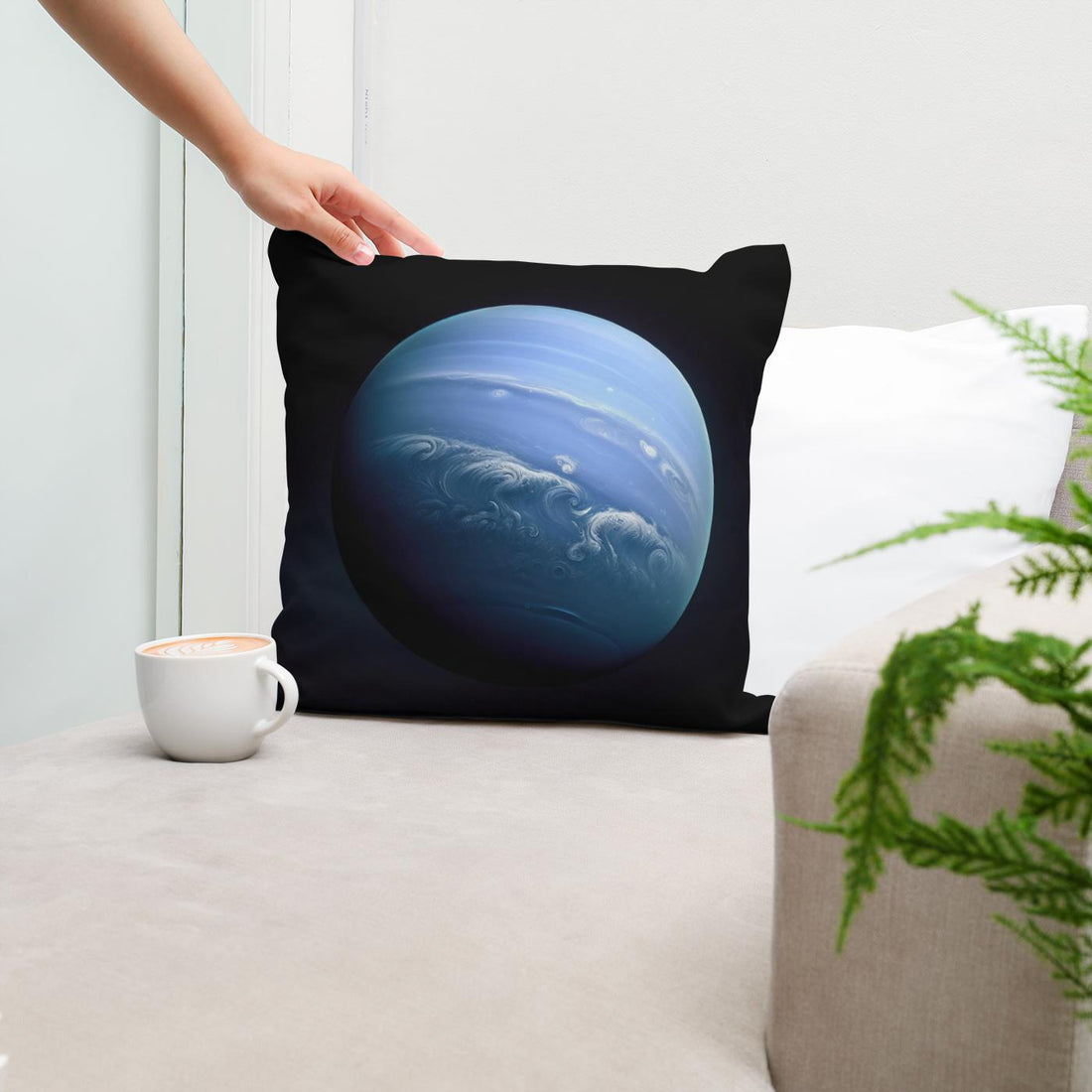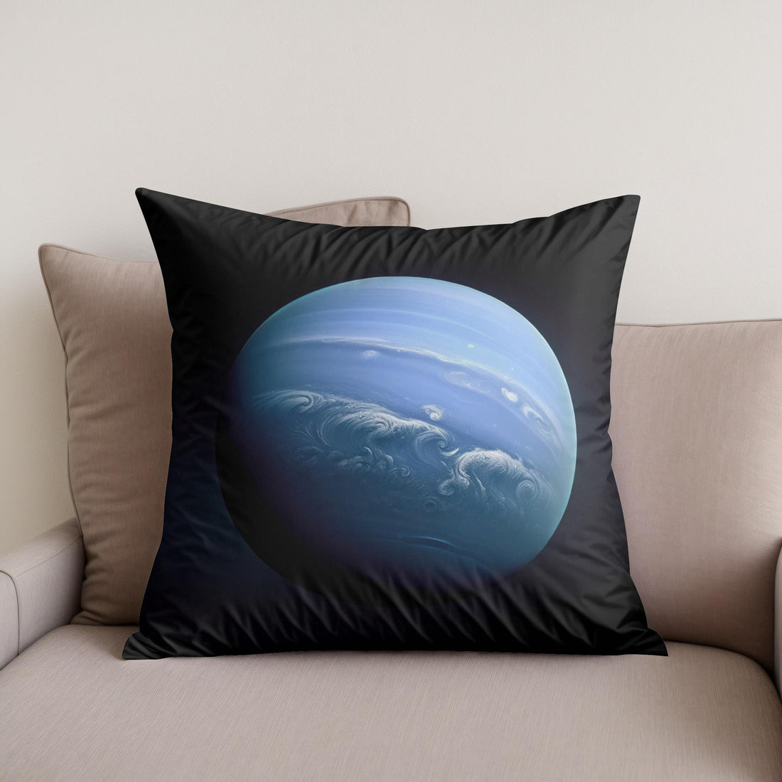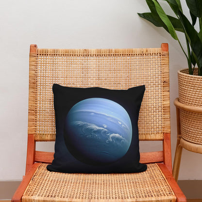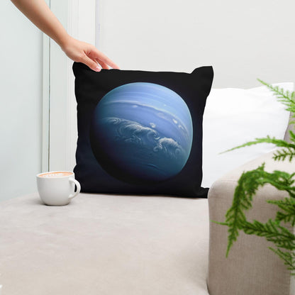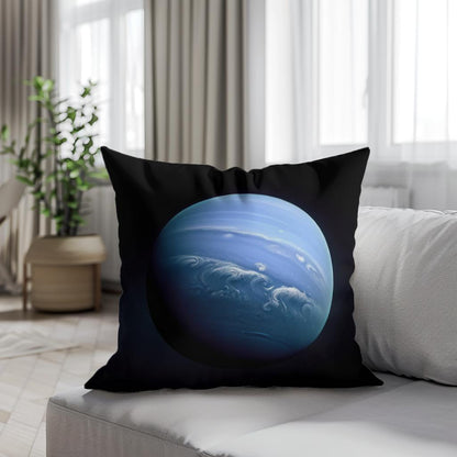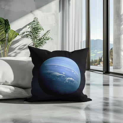 Add a touch of cosmic elegance to your home with this stunning cotton cushion, featuring a breathtaking image of a celestial blue planet. The cushion showcases ethereal swirls and dynamic cloud patterns across a serene, otherworldly blue backdrop that seems to glow against the dark outer space. Perfect for adding a sophisticated yet imaginative flair to any setting, this design promises to captivate and inspire.