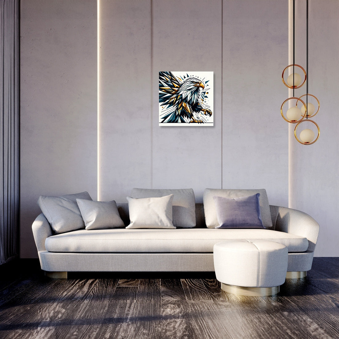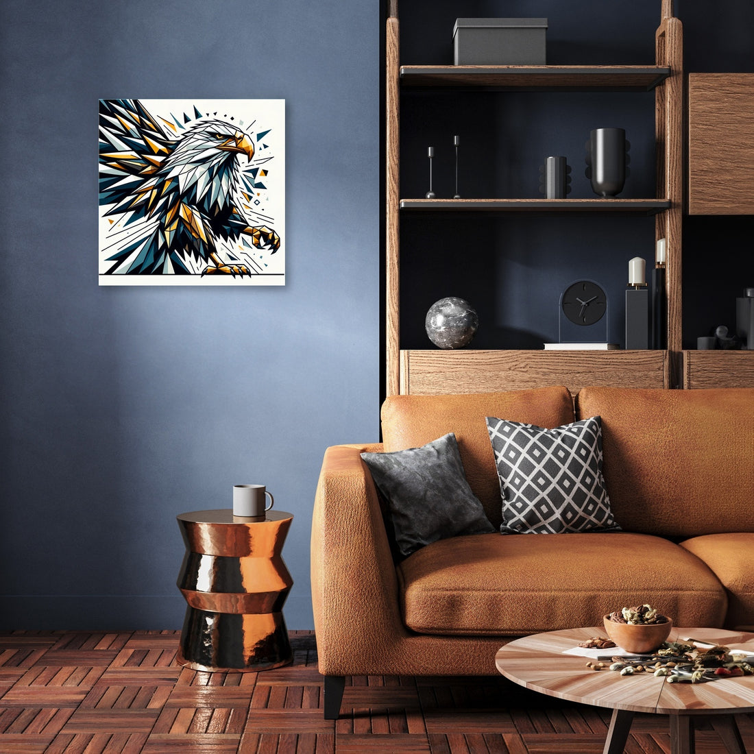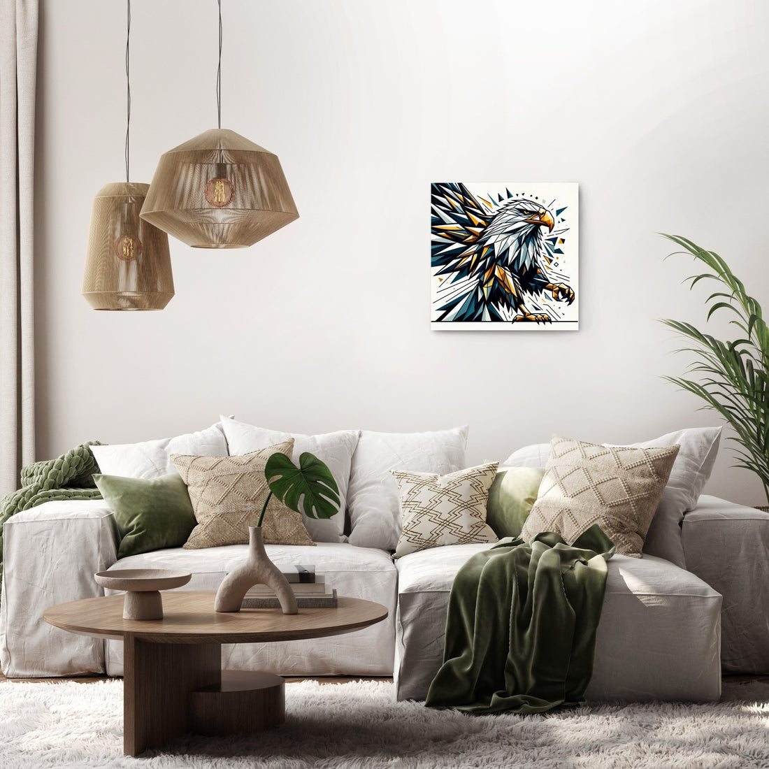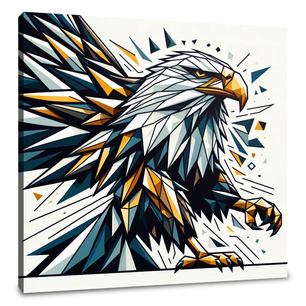 Regal Geometric Eagle Flight is a striking canvas art piece that captures the majestic essence of an eagle in flight through a modern geometric lens. Crafted with sharp, angular lines and bold colours, this artwork embodies the power and grace of the eagle. Its vivid colour palette and dynamic composition make it an eye-catching addition to any space. Ideal for those who appreciate contemporary art with a touch of wilderness, this piece brings a sense of freedom and splendour to your home or office.