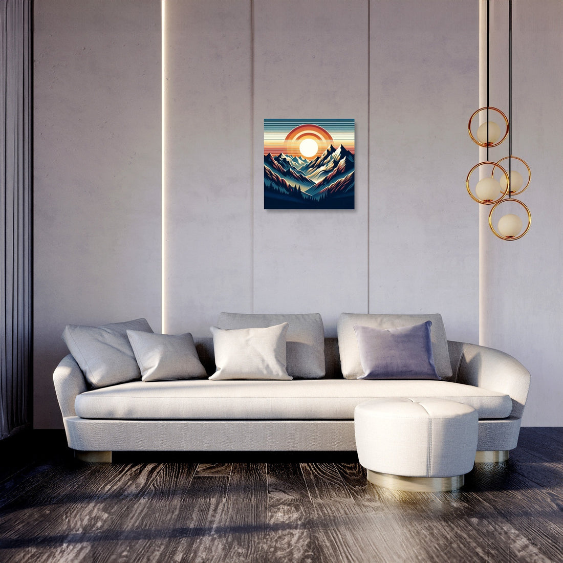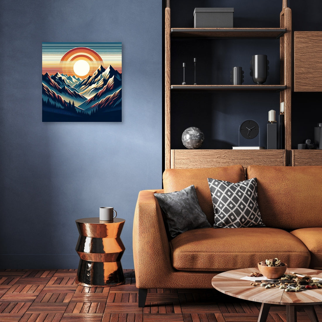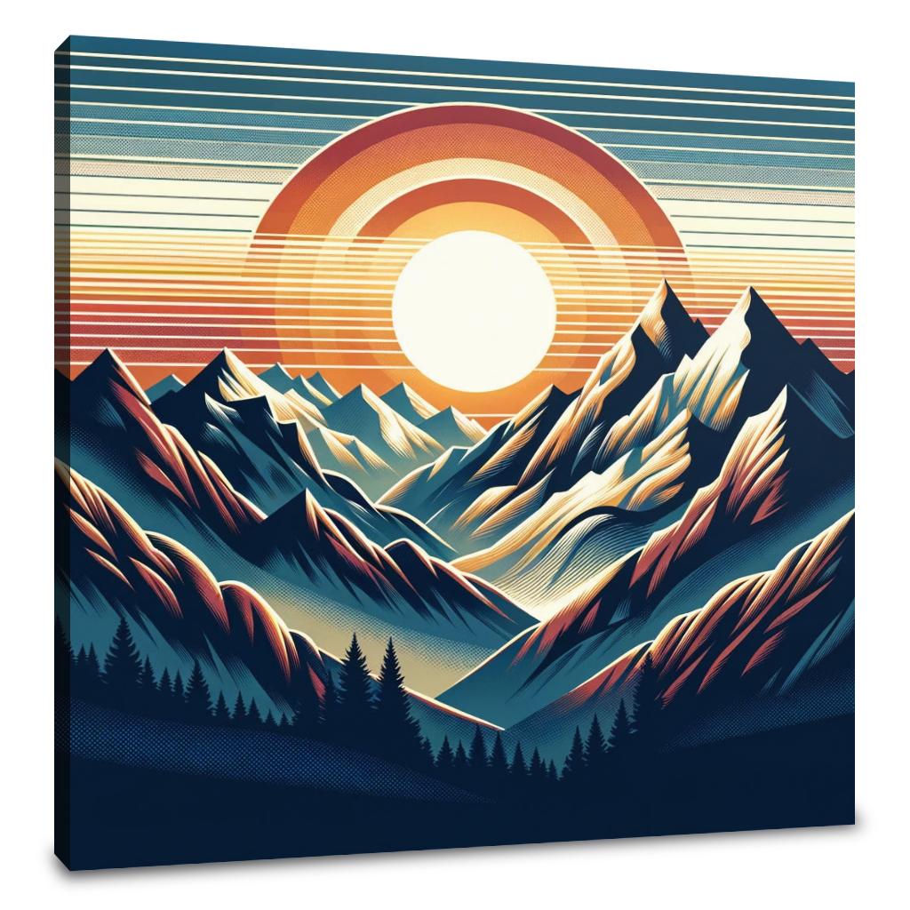Step into the awe-inspiring beauty of 'Sunset Majesty: Mountain Panorama.' This canvas captures the grandeur of mountain peaks bathed in the warm glow of a setting sun. Its rich, contemporary style brings every detail to life, creating a captivating visual experience. Ideal for those who love nature's splendour, it transforms any room into a serene retreat. A testament to the majestic and enduring beauty of the natural world, it's a piece that truly resonates.