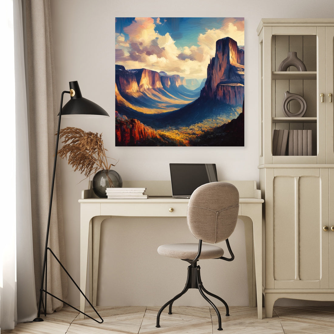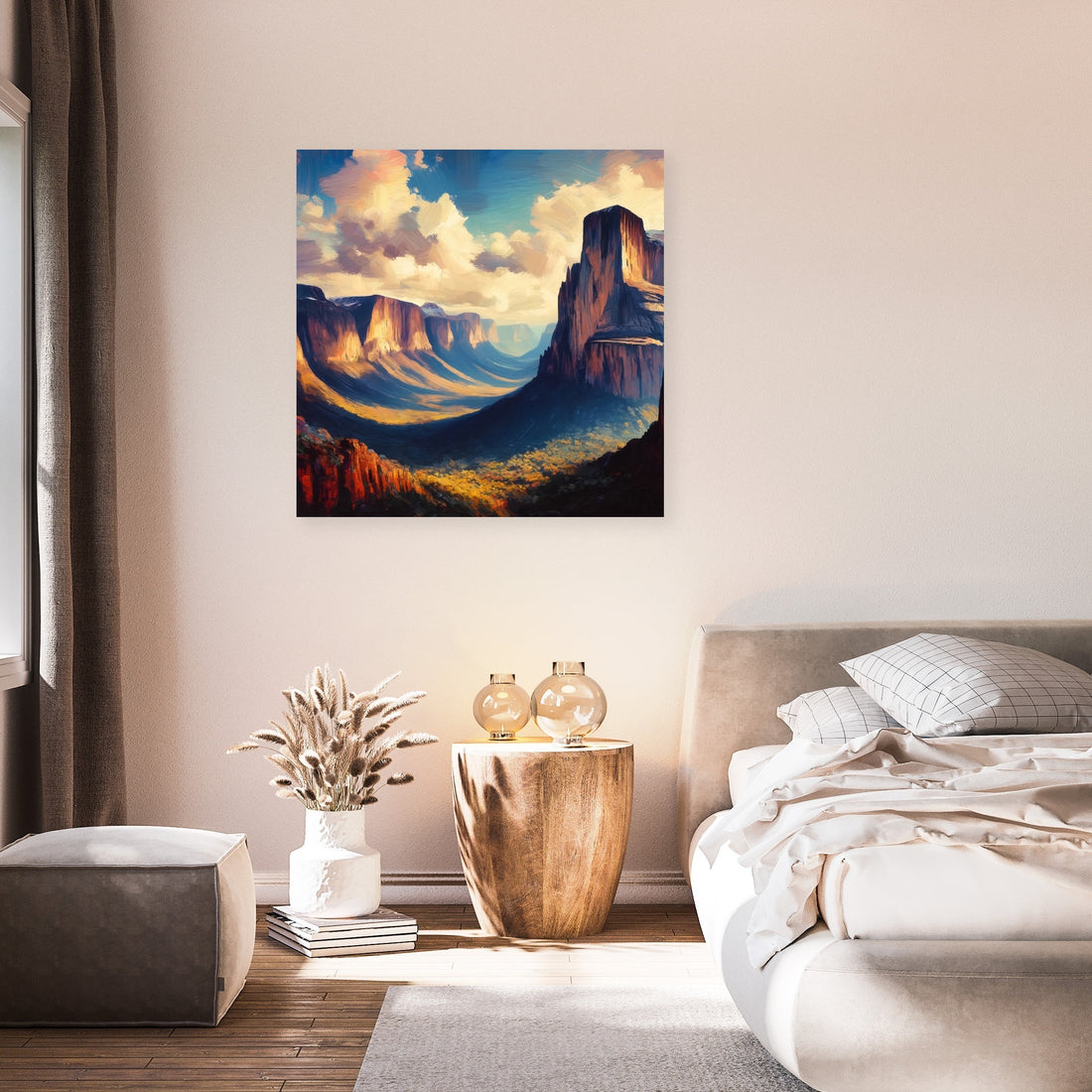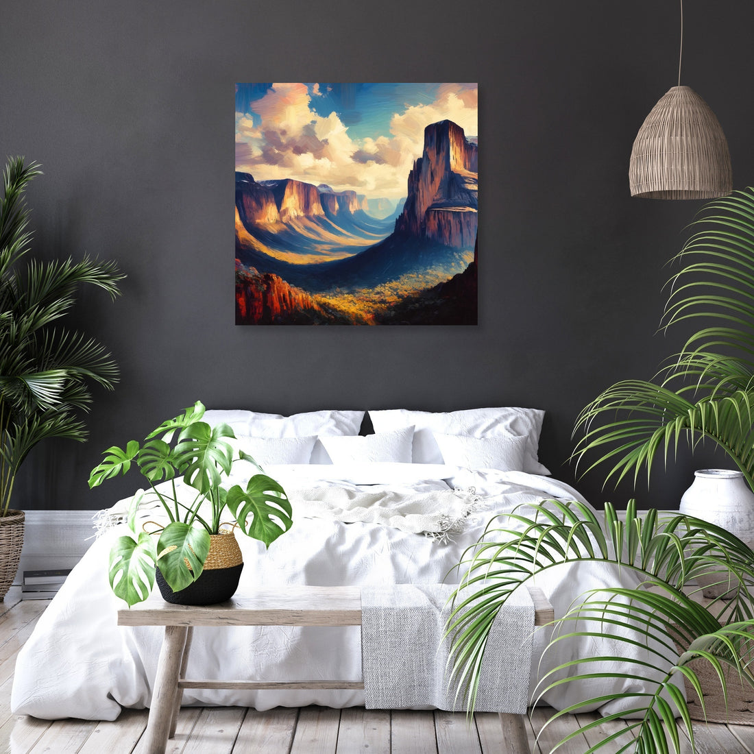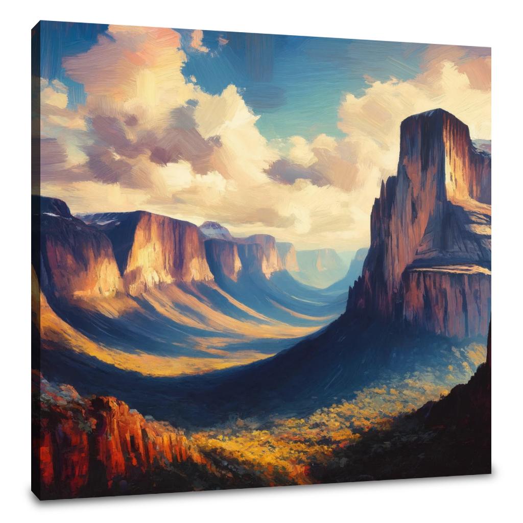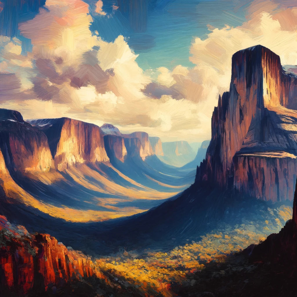 Experience the dramatic beauty of the plateaus and cliffs of a Tepui in Venezuela with this Expressionism-inspired artwork. Using a Contrasting color palette and bold, exaggerated brushstrokes, the Oil on canvas technique enhances the depth and contrasts of the landscape, conveying the grandeur and mystery of this unique natural formation.