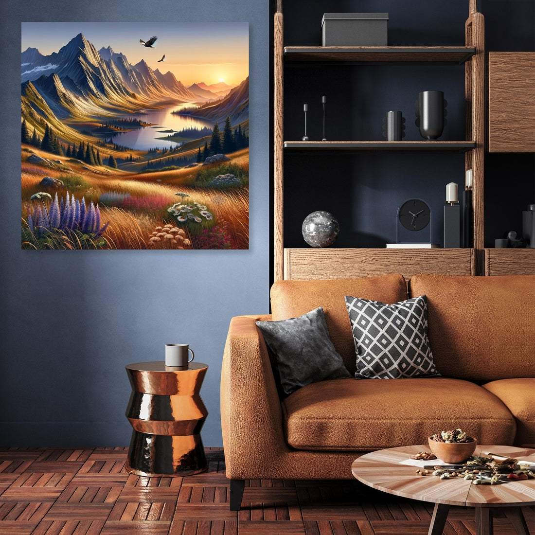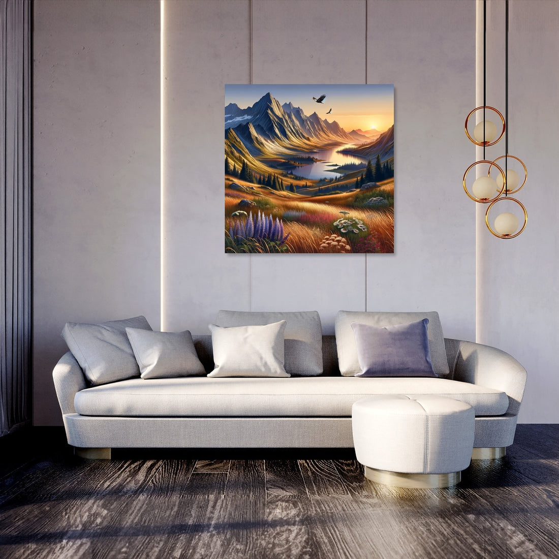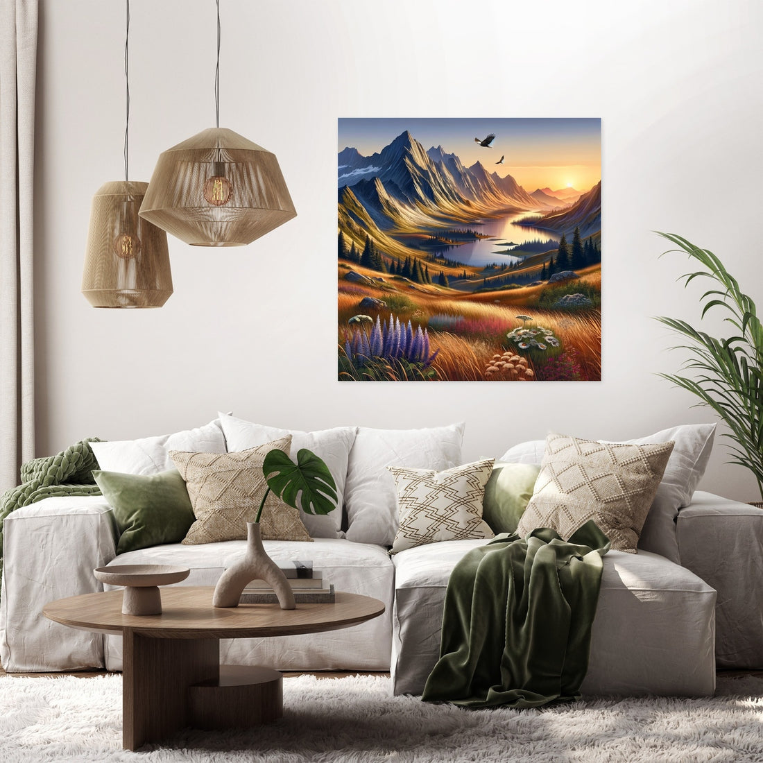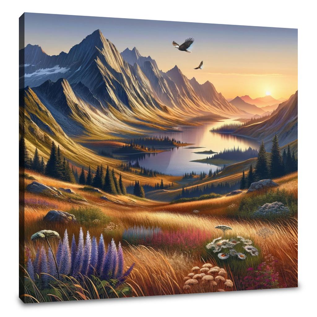 Unveil the serenity of nature with the 'Tranquil Peaks Canvas', a stunning piece of wall art that captures the essence of a mountainous sunset. This canvas art exquisitely portrays the gentle play of sunset hues over majestic peaks, mirrored in a tranquil lake below. Crafted for those who cherish nature's quiet grandeur, it brings a soothing, elegant touch to any space. Ideal for creating a peaceful ambiance, this artwork is a sublime blend of modern aesthetics and natural beauty.